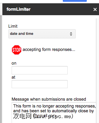 FormLimiter在一定数量的响应后,日期或时间或电子表格单元格等于值时关闭Google表单。