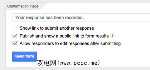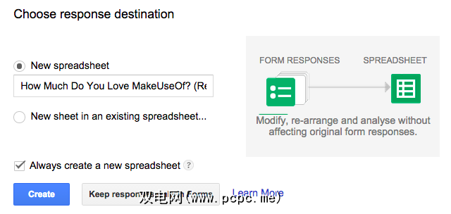 但是等等,我们还没有完成。现在,您必须决定如何接收答复。您可以选择使用回复内容制作Google Spreadsheet,也可以将其保留在表单中。您决定。