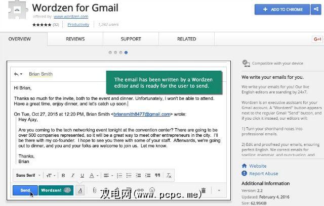 Wordzen应用程序向您选择的浏览器(Chrome或Firefox)添加了“智能发送"按钮,然后将电子邮件草稿发送到现场编辑。他们将使用专业水平的语言和语法为您生成内容。