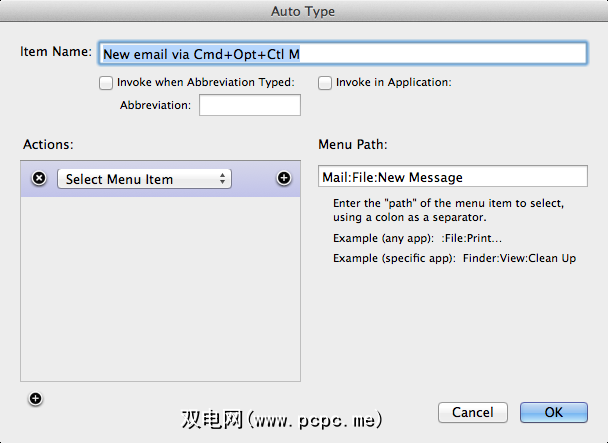 The most advanced feature of SuperTab are automation workflows. Many applications such as the Mac launcher, Alfred can store snippets of text that can be pasted using an hotkey or workflow. But SuperTab can do this and more. You can configure SuperTab to create a new mail message, select and delete all the files on your desktop, hide open applications, type a password, open an application and select multiple menu items, and much more.