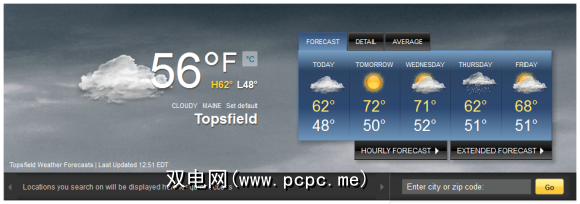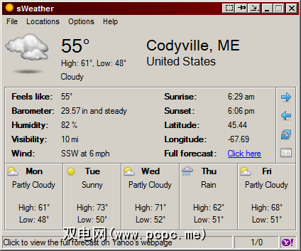 天气数据由Yahoo!提供,因此单击该图标或指向完整天气预报的链接将立即弹出Yahoo!。天气页面进入浏览器。