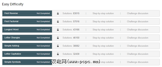很好的是,挑战被标记为轻松,中级或困难。坏消息是,即使是Easy挑战,尤其是较新的挑战,对于编码初学者来说也相当困难。但是,如果您愿意,您随时可以进入档案库并重温旧的挑战。