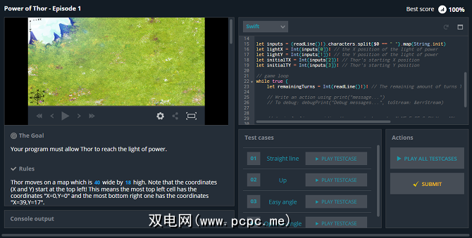 CodinGame 上的Swift编码挑战比Codewars上的挑战更多,这是因为CodinGame的挑战是为游戏设计的。例如,“雷神之力"挑战使您移动了雷神的位置,以便他可以在尽可能少的步骤内到达力量之光。