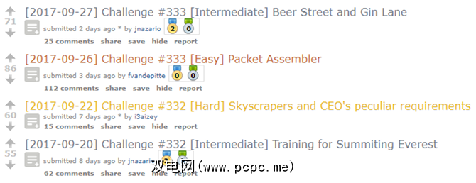 DailyProgrammer 是一个Reddit社区,适合希望通过网络上较困难的编码难题进行测试的程序员。它曾经是日常工作,但过时了,每2-3天左右。