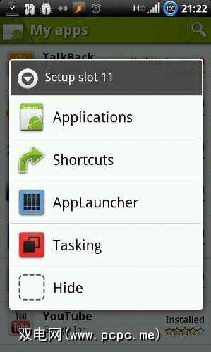非常简单,真的。前两个选项使您可以为该插槽设置应用程序或快捷方式。第三个是AppLauncher,是一个“额外"(付费)加载项,可以让您启动更多应用程序。对我来说,这违背了应用程序的目的–我对“快速启动"的满意之处在于它简单而简约。第四个选项“任务处理"使您可以将按钮绑定到“最近的任务"切换器,切换器的开销也很小。我确实购买了此附加组件,稍后我们将对其进行快速浏览。