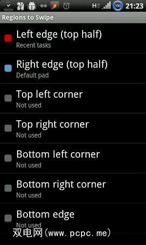 请注意,屏幕上有两个红色的条带。这不是错误:它是“滑动区域"的图形显示。在任何应用程序中触摸这些区域将激活SwipePad。在我的手机上,右侧区域绑定到SwipePad本身,而左侧区域则启动Tasking加载项,可在最近的任务之间快速切换。但是您不仅限于这两个领域: