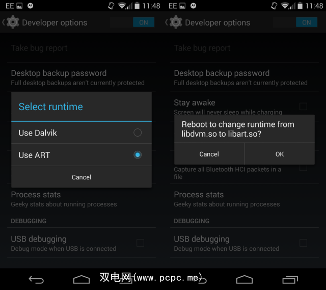 仅在Android 4.4 KitKat(即Android 4.4.1和4.4.2)上才能切换Android设备运行时。 ),但切换很容易实现。预期的结果是您的应用程序和游戏应该更快地启动–这不是一件坏事!