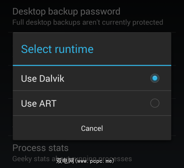 如果ART对您而言不起作用,请切换返回到选择运行时选项即可,您应该在其中选择使用Dalvik 。