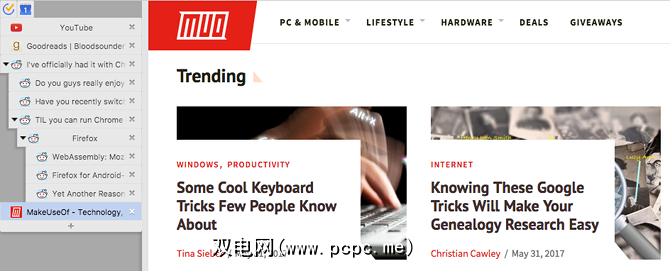 想到的最好的例子是“树样式"标签。此扩展将选项卡栏变为侧边栏,并允许您将选项卡组织为基于树的层次结构,该层次结构可以随意移动。这太神奇了,它确实显示出没有其他浏览器可以做到这一点,这真是太可惜了。 (Vivaldi支持侧边栏选项卡,但是它们不能按层次进行组织。)