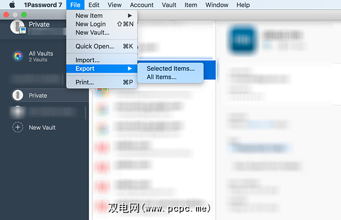 在桌面应用程序中登录您的1Password帐户后,打开您要导出的文件库(如果有多个文件库。)