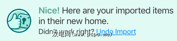 LastPass将立即开始导入数据。您会看到一条消息,通知您已导入了多少帐户。完成导入后,如果发现有任何问题,可以立即撤消导入。
