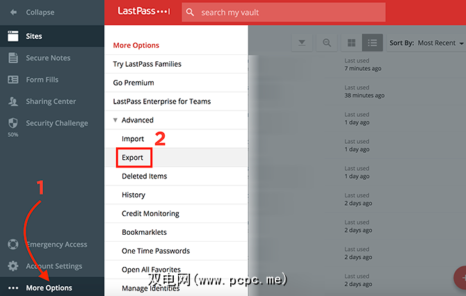 登录到LastPass时帐户,请单击左侧工具栏菜单中的更多选项。