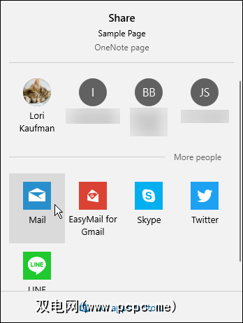 您还可以通过单击应用程序列表上方的人或单击更多人来与他人共享您的笔记。 ,然后从通讯录中选择一个人。