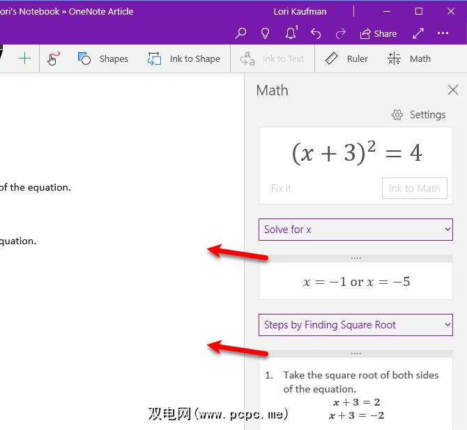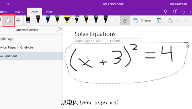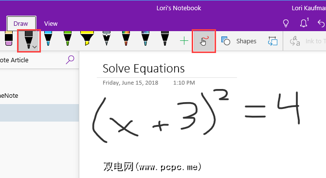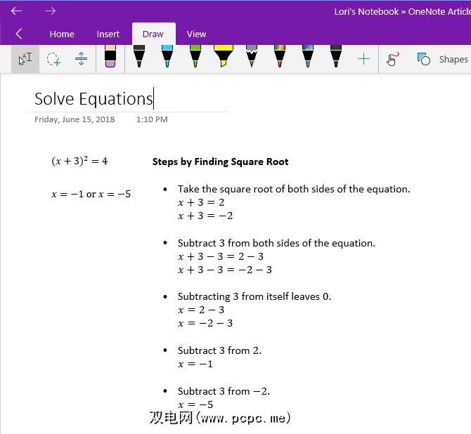 OneNote甚至可以为您求解和绘制方程式。您可以输入或编写方程式。我们将为我们的示例编写方程式,因为当您的方程式包含上标等项目时,方程式会更快。我们还将向您展示如何将书面方程式转换为类型方程式。