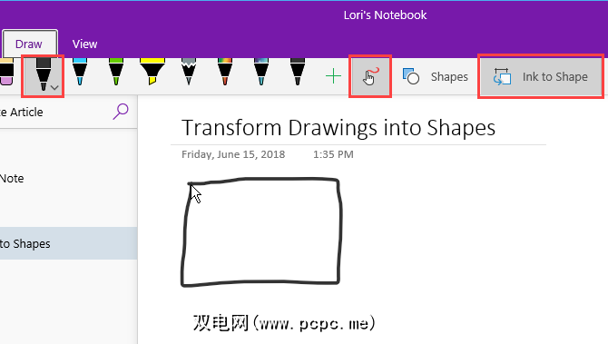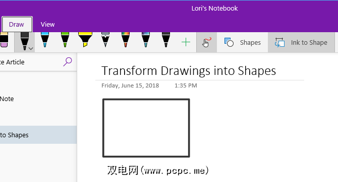 OneNote中绘图工具的另一个不错的好处是可以绘制形状和使它们自动变成形状。