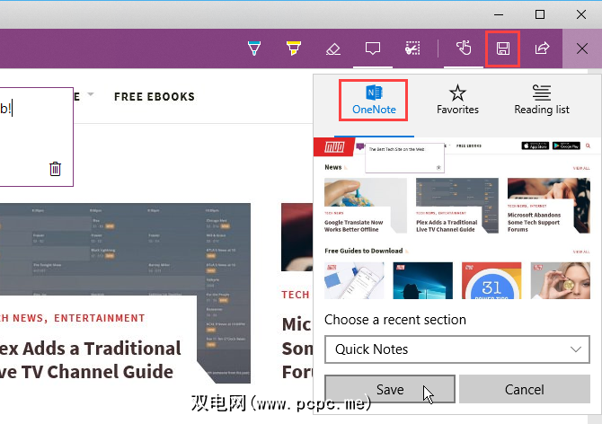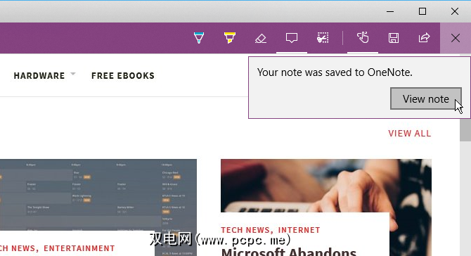 Microsoft Edge允许您将注释添加到网页并将其保存到OneNote。