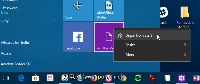 如果您决定不再将该笔记固定在“开始"菜单上,请右键单击笔记的图块,然后选择从开始取消固定。