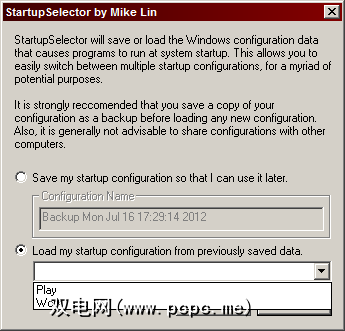 StartupSelector将保存或加载使程序在系统启动时运行的Windows配置数据。