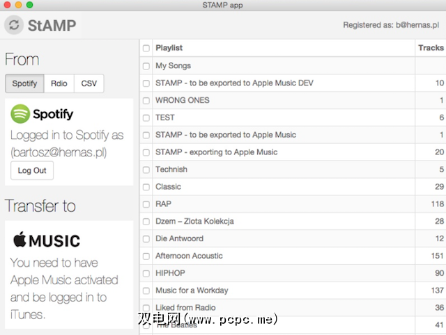 要使用STAMP,请打开该程序并允许其连接到iTunes。在侧边栏中,选择要从中导入的服务-Spotify,Google Music,Rdio-并在出现提示时授予STAMP访问权限。