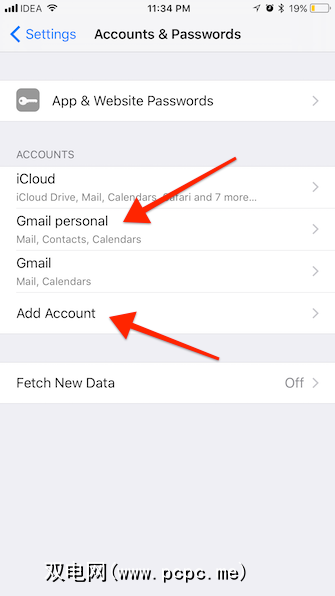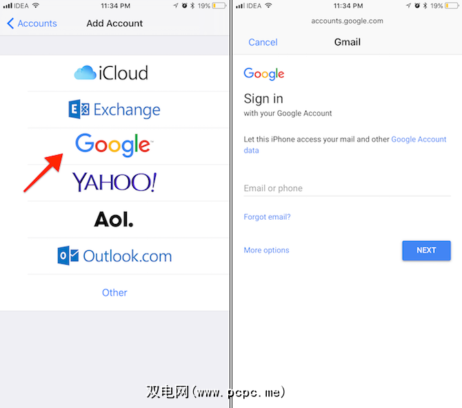 第2步:如果您的Gmail帐户尚未连接到iPhone,点击添加帐户并登录。