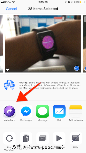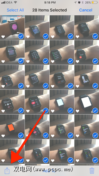 步骤2 :选择要传输的照片(或选择所有照片),然后点击共享按钮。