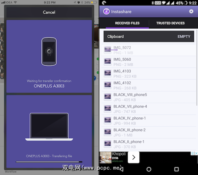 下载:适用于iPhone的Instashare(免费)| Instashare Android版(免费)