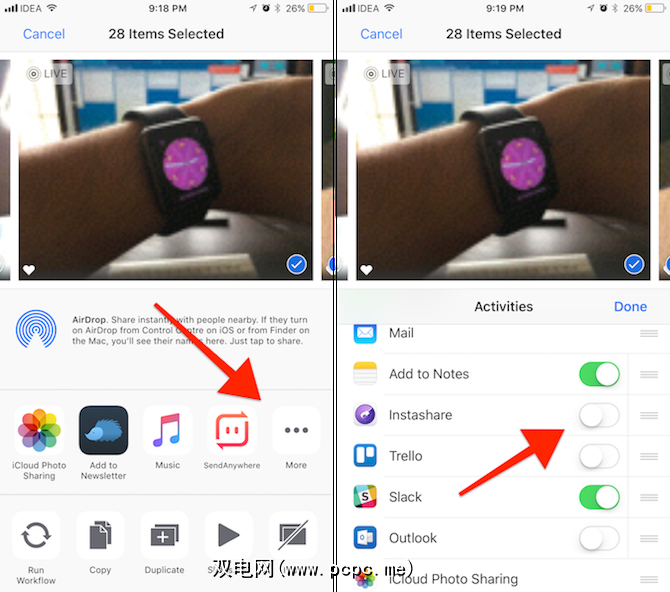 第3步:我们需要先启用Instashare的共享扩展名。从第一行转到更多部分,并启用 Instashare 。