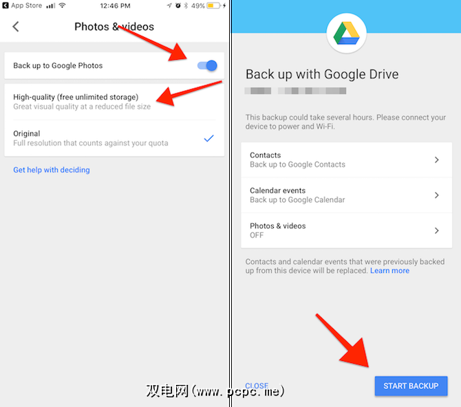 如果您不介意下载Google云端硬盘应用,这是将所有联系人和日历约会同步到Google的最简单方法。将所有照片上传到Google相册都需要快速且稳定的互联网连接。