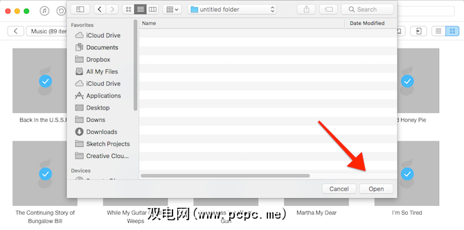 步骤5 :从文件选择器中,选择音乐文件的目的地,然后等待歌曲传输。