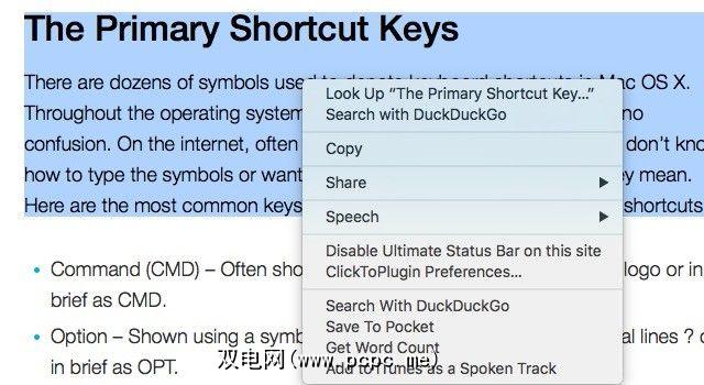 OS X还具有一个名为< strong> control (ctrl)。您会发现它夹在空格键左侧的 fn 和 option 键之间。此 ctrl 键是继续使用新Mac时会发现的一些键盘快捷键的一部分。目前,您需要了解有关 ctrl 键的主要事情是可以将其与鼠标单击结合使用以打开上下文菜单,也称为右键单击菜单,位于您的任何位置Mac。
