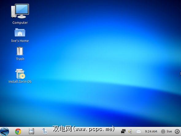 一旦将下载的ISO刻录到CD上,写入USB或准备使用VirtualBox,您可以直接启动到实时环境。加载时间不会很长,并且Zorin OS桌面很快就会出现。