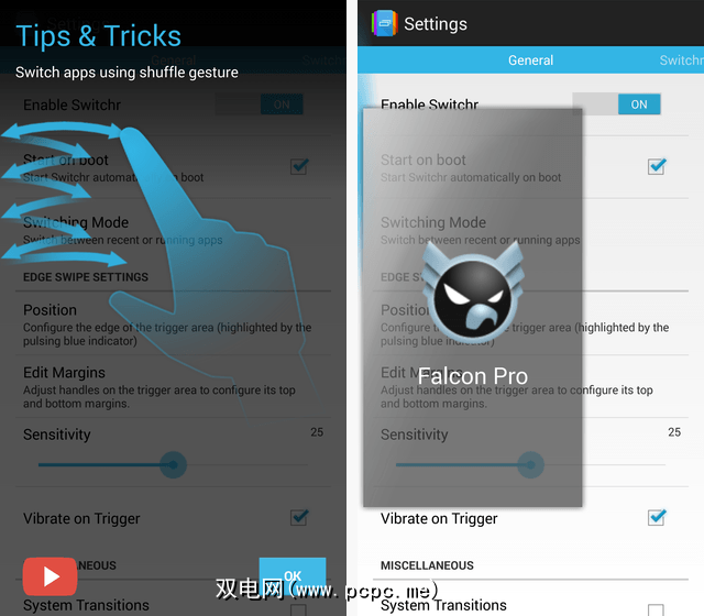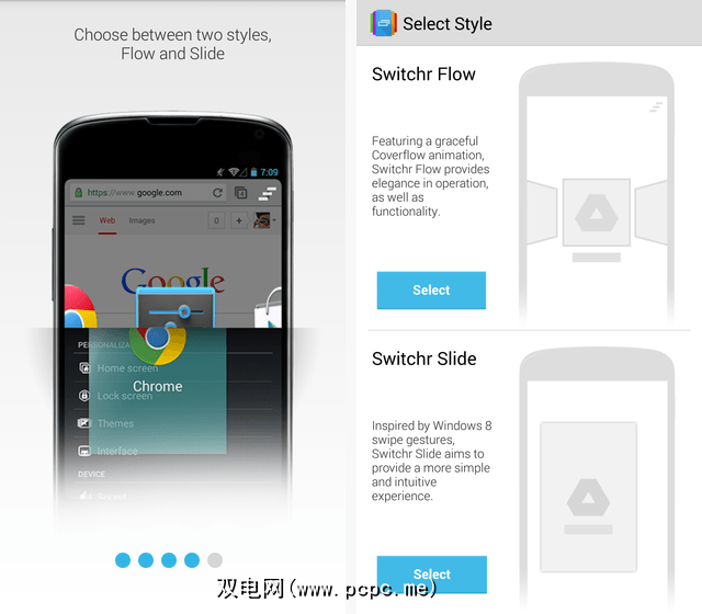 必须使用入门程序通常是提示开发人员的工作不够努力,无法使其应用程序直观易用。 Switchr是此规则的罕见例外:其创新的滑动界面需要预先进行一些解释。它远非第一个使用侧滑手势的应用程序(SwipePad和前面提到的Sidebar Pro这样的成熟替代方案已经使用了多年),但是它的Flow和Slide交互是新的: