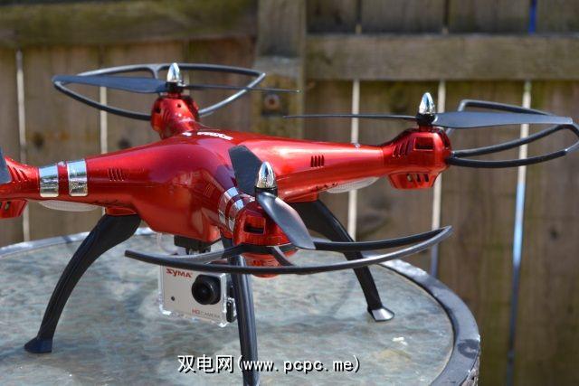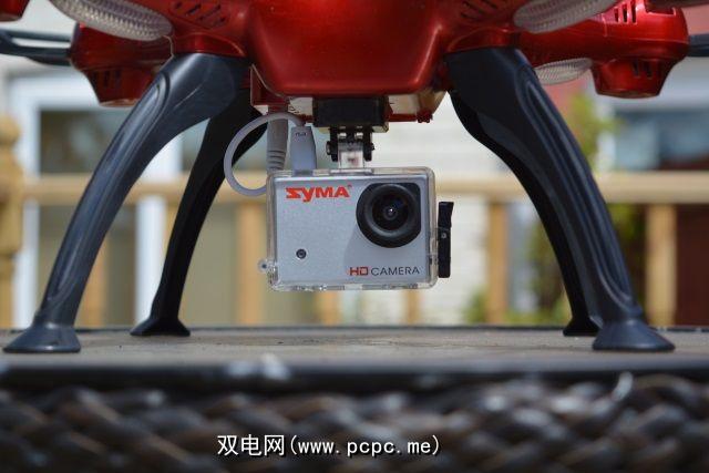 相机是Syma X8G,轻巧的8 MP,GoPro风格运动相机,它被夹在四轴飞行器的底部,并从无人飞行器上汲取能量来拍摄照片和视频。