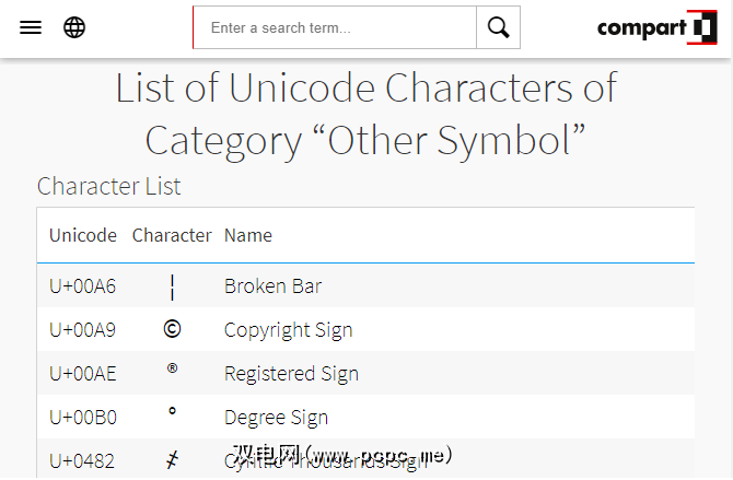 如果使用上述任何一种方法都找不到所需的符号,您可以通过浏览Unicode支持的所有符号来找到它。查看Compart的“其他符号" Unicode字符列表,您可能会发现自己感兴趣的Unicode字符。如果您希望使用其他字符,请查看Unicode字符表。