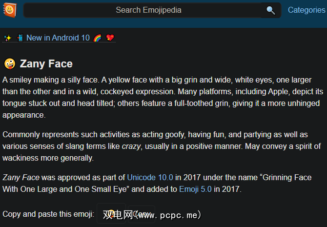 您可以在此处搜索特定的表情符号,按类别浏览以及阅读表情符号新闻。每个表情符号的页面不仅告诉您其正式含义是什么,而且还告诉您常用的含义。