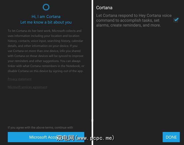 一旦下载并安装Cortana应用程序,则需要使用Windows 10上使用的同一Microsoft帐户登录。