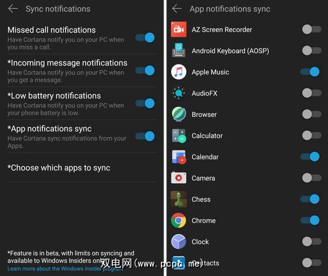 最后一个选项,应用通知同步,可让您同步任何应用的警报。但是,这需要您向Cortana授予Android通知的权限。这是一个快速的两步过程。