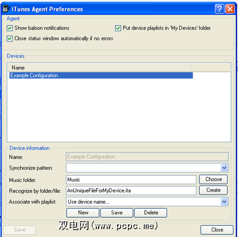 配置iTunes Agent很简单。所有必要的设置都显示在一个窗口中,即使对于那些不懂技术的人来说也是显而易见的。您可以将MP3播放器与iTunes中的一个播放列表相关联(正常或智能)。选择智能播放列表将使您每次插入设备时都能自动刷新歌曲。例如,将MP3播放器与一些智能“随机播放"播放列表相关联,始终会在播放器上放置新的歌曲集。