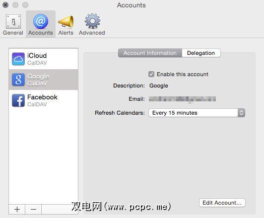 同步Google Calendar是Mac OSX。日历应用程序很简单。您只需要打开日历应用程序,依次转到首选项和帐户标签。点击加号“ +"按钮添加您的Google帐户。您需要您的登录名和密码,或者,如果使用两重身份验证,则需要一个应用程序密码。