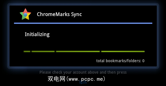 请注意,您首先必须向该应用提供权限。完成此操作后,它将初始化并开始从您的Google帐户同步您的书签。