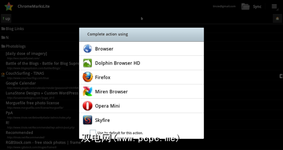 很遗憾,您必须使用第三方Google Android设备上的应用程序访问已同步到您的Google帐户的书签。但是,至少使用此应用程序,您可以轻松访问与您的Google帐户同步的书签,尽管免费版有其局限性,但它非常有用。我认为,如果您的Android设备支持与您安装的浏览器同步,则付费版本值得升级。否则,只有在您希望启用书签的手动编辑和自动同步的情况下才值得。