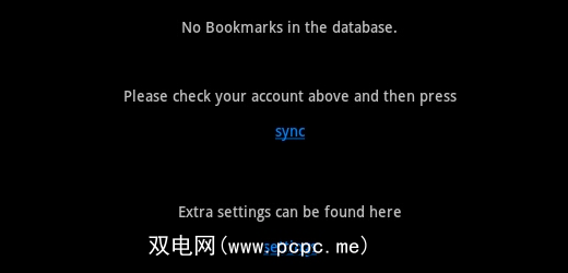 首次打开该应用时,您会看到数据库中还没有书签。单击> sync 按钮以启动同步。