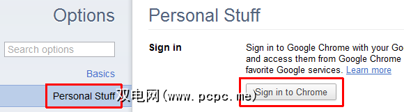要使ChromeMarks Lite正常运行,首先需要启用计算机之间的Google Chrome书签同步。在浏览器中,点击右上角的扳手图标,然后打开>选项。它将在新选项卡中打开。转到>个人资料,然后根据显示的内容,点击>登录Chrome 或>设置同步…按钮。