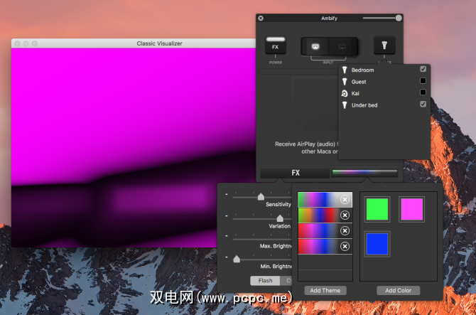 Ambify具有与Hue Disco类似的配置选项,但可以用作AirPlay目标或捕获现有系统音频。不幸的是,麦克风输入不是一种选择,这似乎是一个奇怪的遗漏。在测试中,我觉得它的响应速度不及Hue Disco,但衰落速度较慢,频闪效果也较差,但这是主观的,可能您应该自己测试一下。