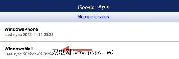 您应该能够看到所有设置为与您的Google帐户同步的设备。 Windows 8应该包含在此列表中,但称为“ WindowsMail"。单击以打开。
