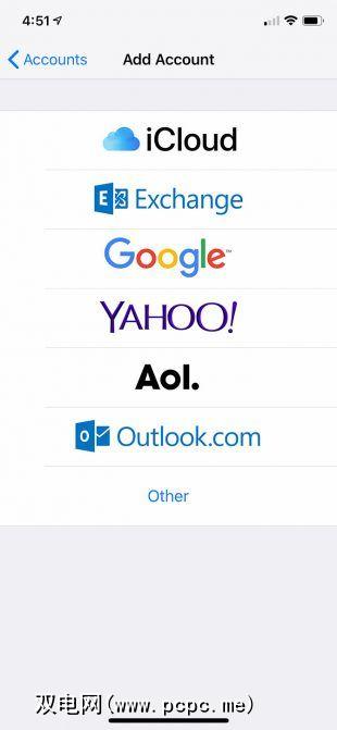要开始使用,请在手机上打开设置应用并向下滚动直到看到密码和帐户。点击此按钮,然后在添加帐户上,该帐户将显示在iPhone上已经存在的帐户列表的底部。