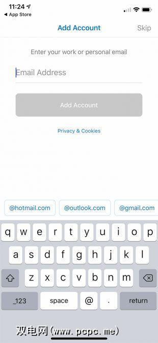 一旦Outlook已安装,找到该图标并点击它以启动应用程序。系统将提示您使用Microsoft或Office 365帐户登录。如果第三方托管您的Exchange帐户,则您也可以使用该服务器的登录信息。登录后,您将看到应用程序的主屏幕。