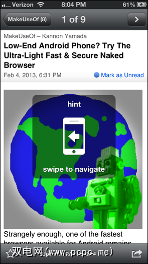 避免数据速率收费可能很麻烦,但是使用Byline,您的所有阅读材料都会定期通过WiFi一次全部保存下来,以供离线浏览。这意味着在旅途中无需与数据计划同步。所有内容(甚至图像)都存储到RSS浏览器中,以供您以后查看。实际上,您最多可以存储2000个项目!