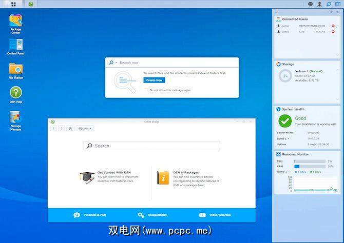 DSM明亮,开朗且熟悉,具有您期望拥有的完整功能桌面环境。右上角有一个状态栏,您可以单击以访问通知或用户设置。