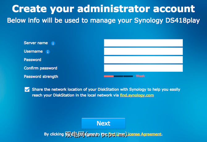 假设您的本地网络上还没有名为“ diskstation"的设备,那么现在应该可以访问导航到 http:// diskstation:5000 / 或 http://diskstation.local:5000 。但是,如果您要从旧设备升级,则可能已经使用了该名称。在这种情况下,建议您先更改现有的服务器名称。您可以通过登录Web界面并访问控制面板->网络->服务器名称设置随时进行此操作。
